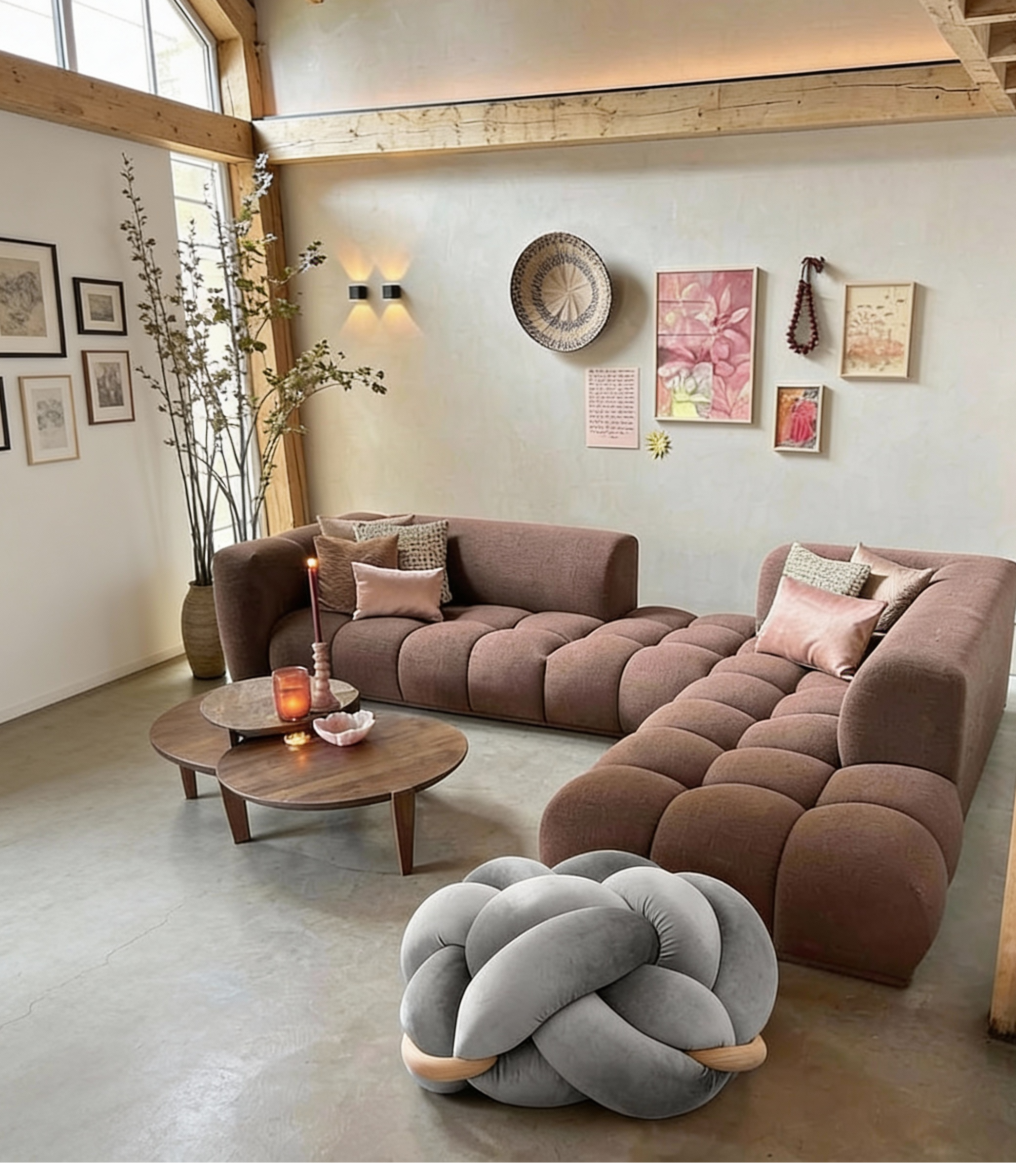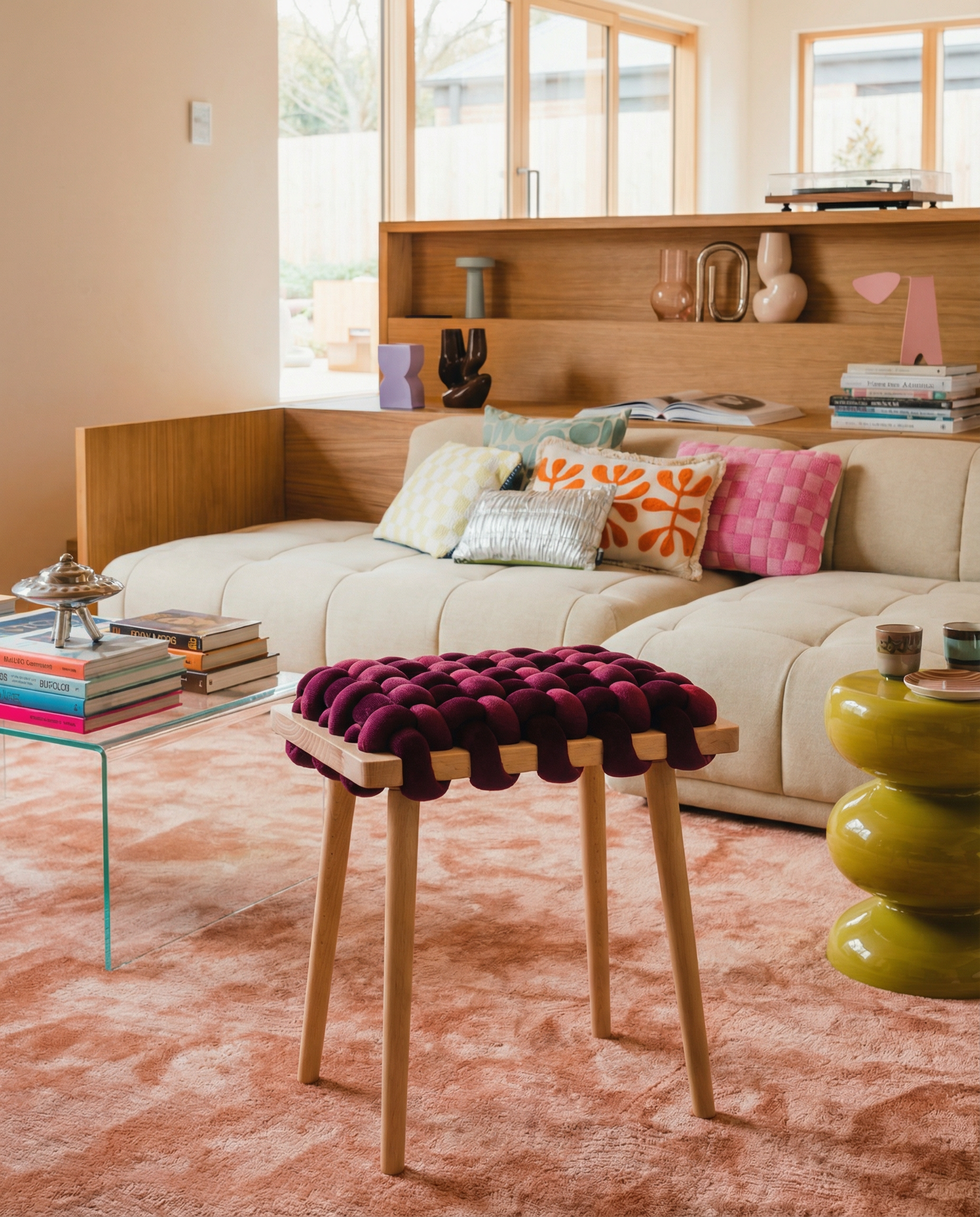 The Knot Ottomans are more than just a pop of color and conversation starter—they're also functional and comfortable, providing the perfect solution for extra seating.